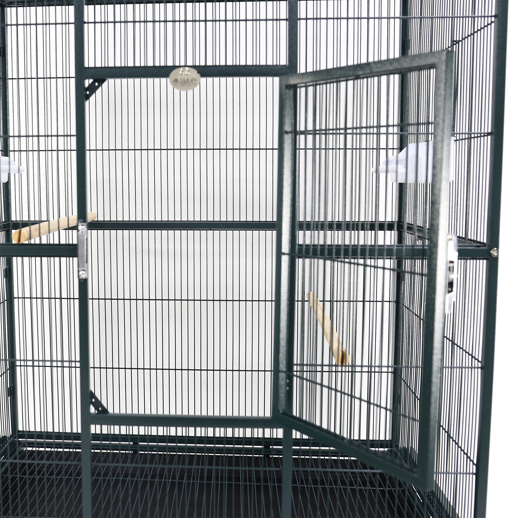 • 2 wood perches & 2 plastic feeder stations